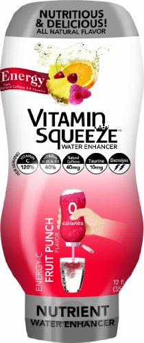 | 1 of 1 people found the following review helpful: By Zoooolooo "Zoooolooo" (California) - See all my reviews This review is from: Vitamin Squeeze Energy Drink, Fruit Punch, 12-Ounce (Pack of 4) (Grocery) Ever since I saw Mio I thought it was a cute idea, but why do I really need flavor? I prefer function, and VitaminSqueeze Fruit Punch is my family's favorite, and get the flavor for free!Great taste! My kids definitely prefer a small glass of "Fruit Punch" in the morning over a Gummy Vitamin. Anyway, great new product. I recommend. By Amazon Verified Purchase This review is from: Vitamin Squeeze Energy Drink, Fruit Punch, 12-Ounce (Pack of 4) (Grocery) I have pretty much kicked my coke/diet coke habit and its thanks to products like this. I wanted to drink more water and less canned soda. I have a hard time getting excited to drink water so I needed something to spice it up. I've tried other products and liked them but not many offer a great taste with low/no calorie, while being enhanced with vitamins.I've tried zipfizz and loved them but at more than a dollar a pop it was getting expensive. I ran across this while looking at the Mio products and thought it was cheaper while also containing vitamins so I'll give it a try first. I have been pleasantly surprised by how good it tastes. It has a little bit of a vitamin'y taste (cant think of a better way to describe it) but not bad at all. You can meter however much you want into your water so your tastes may be different than mine. All in all the taste is very close to Hawaiian Punch. I don't get the same energy buzz I got from ZipFizz but it does give you a small kick to... Read more |